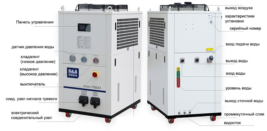 Компания S&A предлагает чиллеры для охлаждения волоконных лазерных источников различной мощностью: до 500, 800, 1000, 1500, 2000, 3000, 4000, 6000, 8000, 12000 Вт.