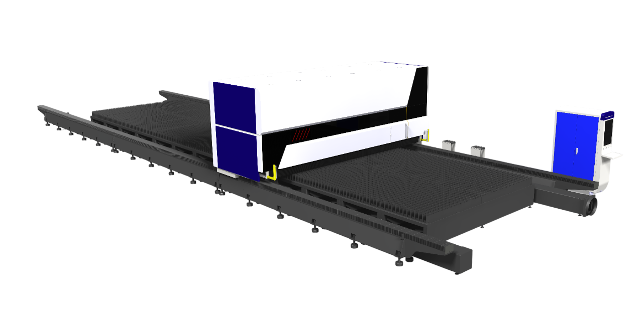 Основой подвижный элемент оборудования, портал, установленный поперек между направляющими оси Y, и приводится в движение с обеих сторон мощными сервоприводами. На портале установлены различные компоненты станка, например, транспортное волокно источника (система доставки луча), ось Z, режущая головка, защитная кабина с вентиляторами, система видеонаблюдения.