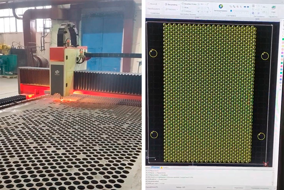 Резка деталей из низкоуглеродистых сталей от 12 до 18 мм с большим количеством отверстий.