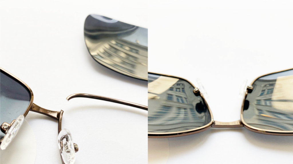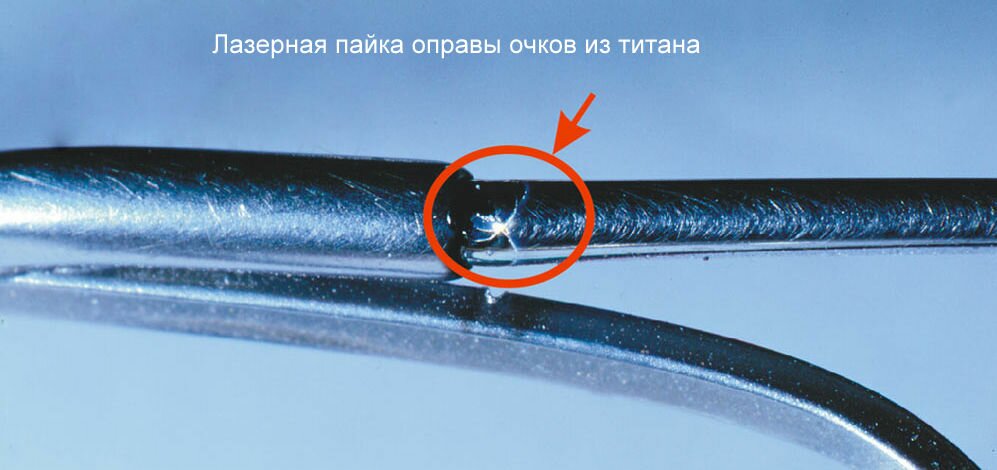- Ремонт оправы очков. Лазерной пайкой можно восстановить целостность оправы, изготовленной практически из любых материалов, в том числе и тех, которые были повреждены в области переносицы. Также данный способ позволит отремонтировать пружинки держателя носового упора, заушин, другие подвижные крепления. Технология может использоваться и для выполнения других работ, где требуется высокая точность и прочность соединения.