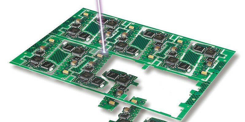 - Монтаж печатных плат. При помощи точно сфокусированного луча можно соединить контакты, площадь который не превышает 1 мм2. Это позволяет получать очень прочные, тонкие швы без малейшего контакта рабочего инструмента с поверхностью, что исключает ее перегрев, деформации. Ни один другой способ пайки не дает такого результата, как лазерные аппараты.