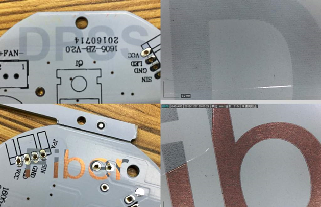 Рис.12. Маркировка алюминиевых печатных плат: УФ лазер не вызывает повреждений поверхности.