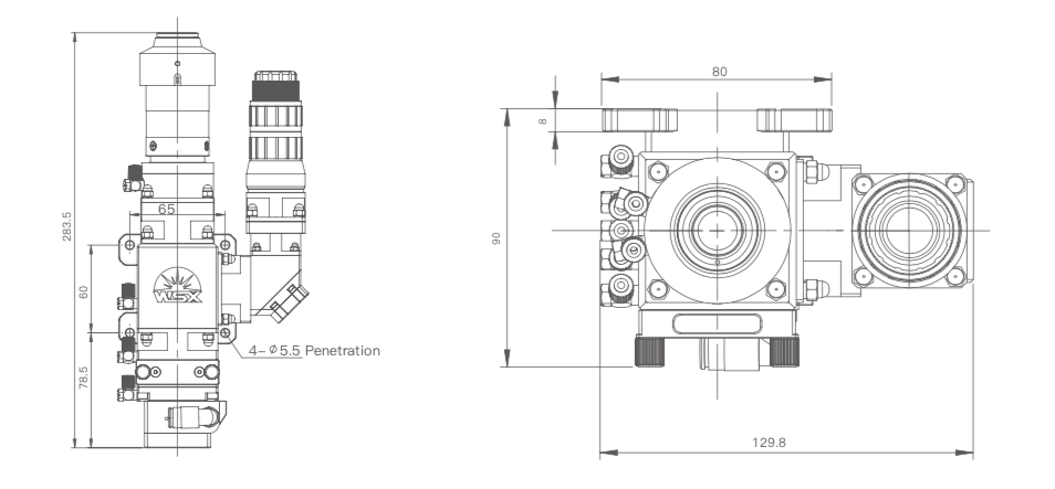 Лазерная головка подходит для сварки тонких материалов и мелких изделий. Полностью герметичная структура защищает оптическую часть от загрязнений. Воздушная защита предотвращает попадание продуктов обработки на защитное стекло.