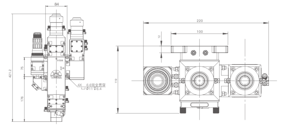 Лазерная головка использует два входа для лазера и предназначена для сварки тонких, сильно отражающих материалов с максимальной эффективностью и минимальными дефектами. Полностью герметичная структура защищает оптическую часть от загрязнений. Воздушная защита предотвращает попадание продуктов обработки на защитное стекло. Механизм фокусировки облегчен.