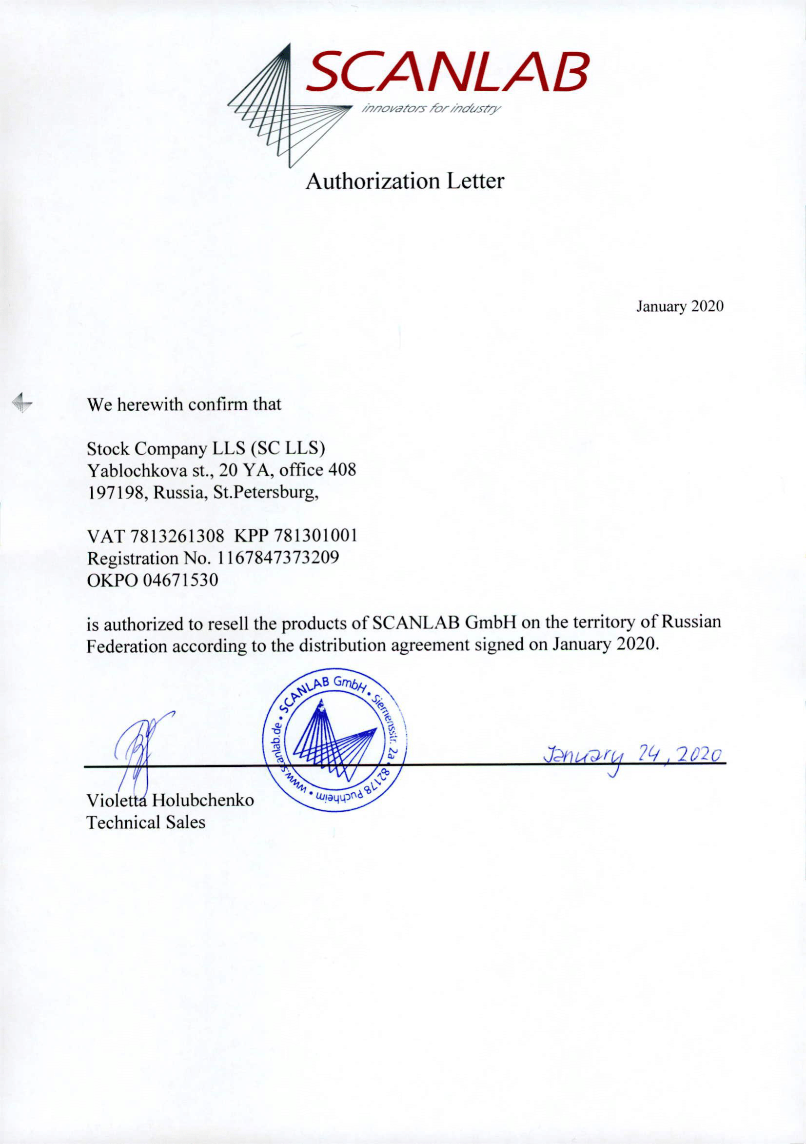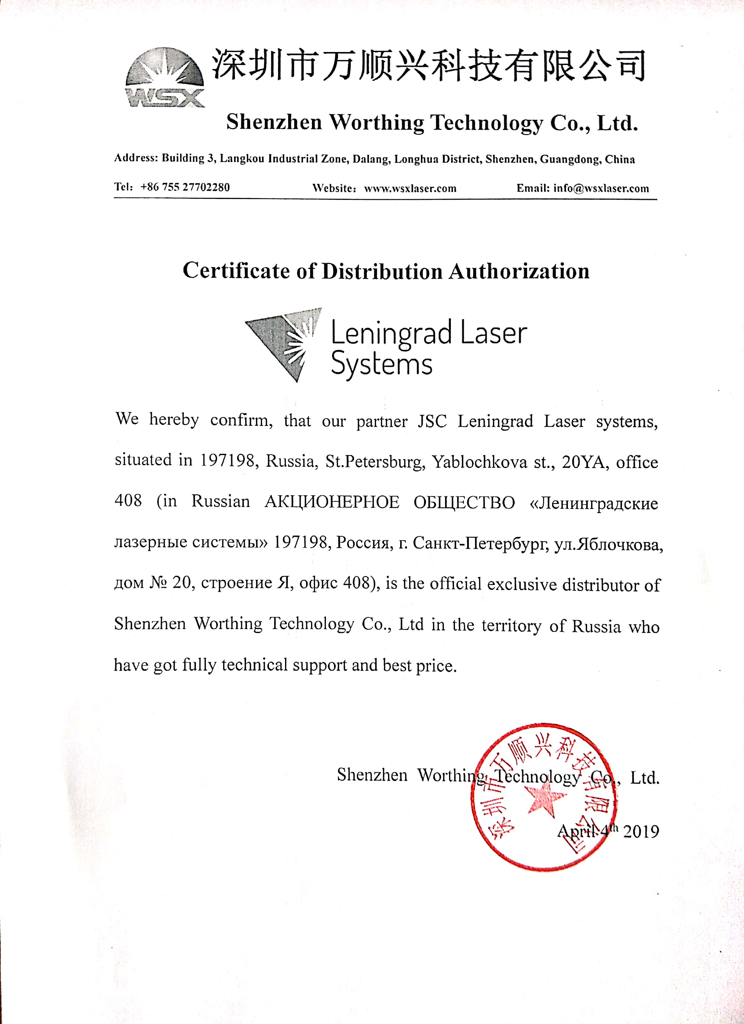 BWT сертификат дистрибьютора и представителя по сервису волоконных лазерных источников
